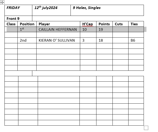 Sunday 29th March Boys 18 Holes S/F