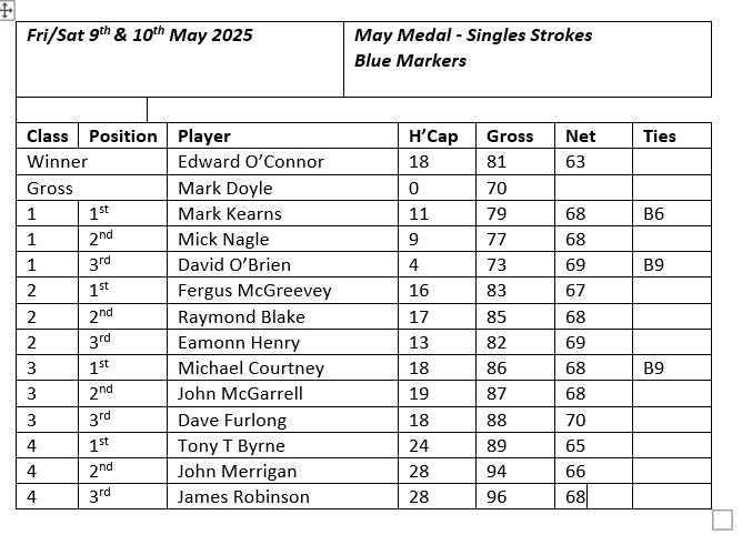 Mens May Medal