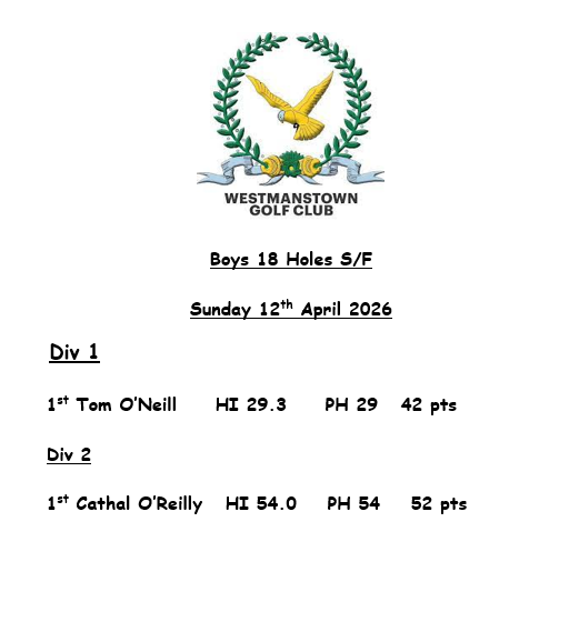 Sunday 12th April Boys 18 Holes S/F